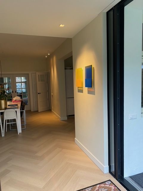 Een uitbouw met een slaapkamer, badkamer en een walk in closet. De uitbouw wordt aan de bestaande huis met lichtstraat verbonden. De lichtstraat heeft inbouwkasten en is tevens een directe verbinding van de parkeerpplaats met de tuin.