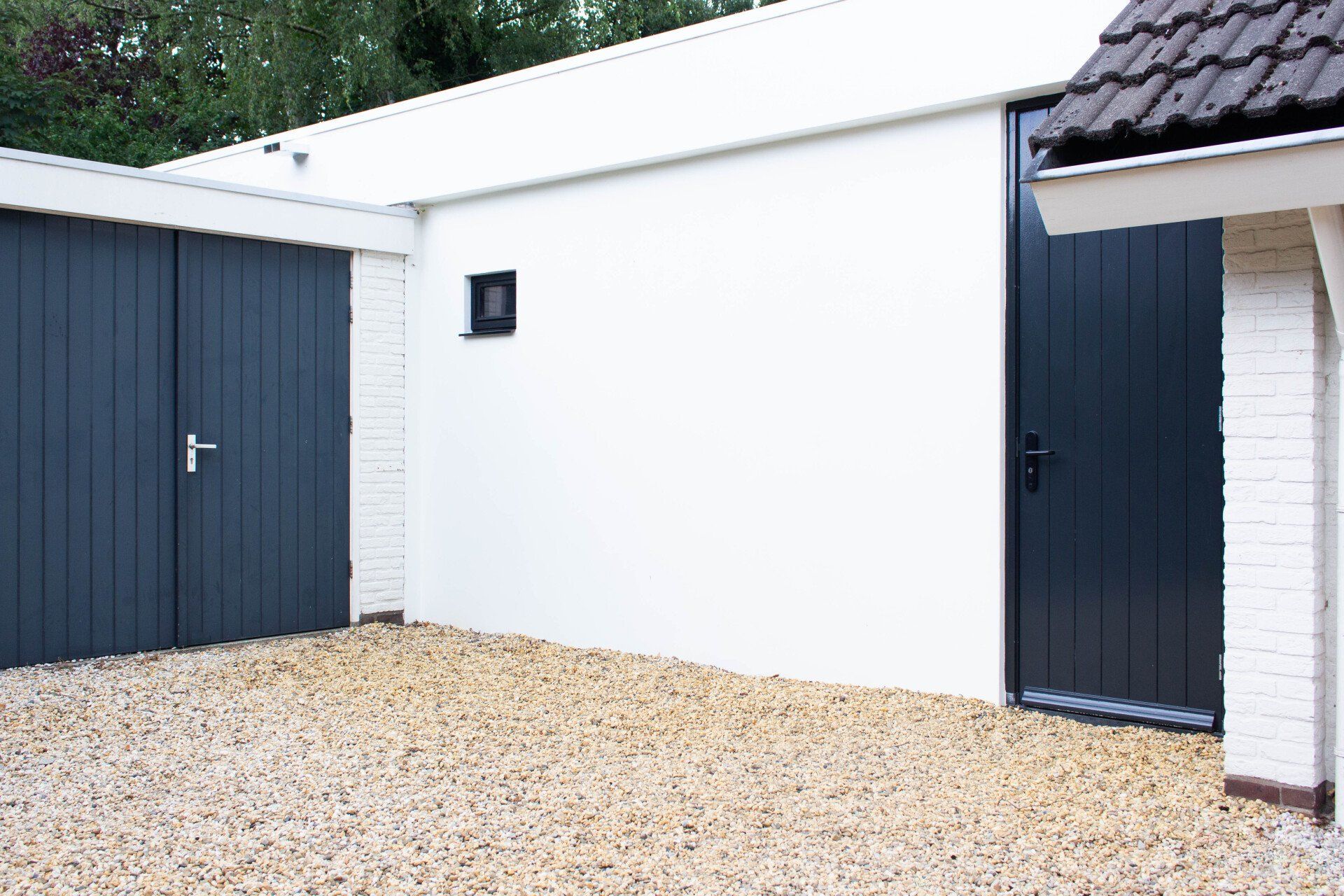 Een uitbouw met een slaapkamer, badkamer en een walk in closet. De uitbouw wordt aan de bestaande huis met lichtstraat verbonden. De lichtstraat heeft inbouwkasten en is tevens een directe verbinding van de parkeerpplaats met de tuin.